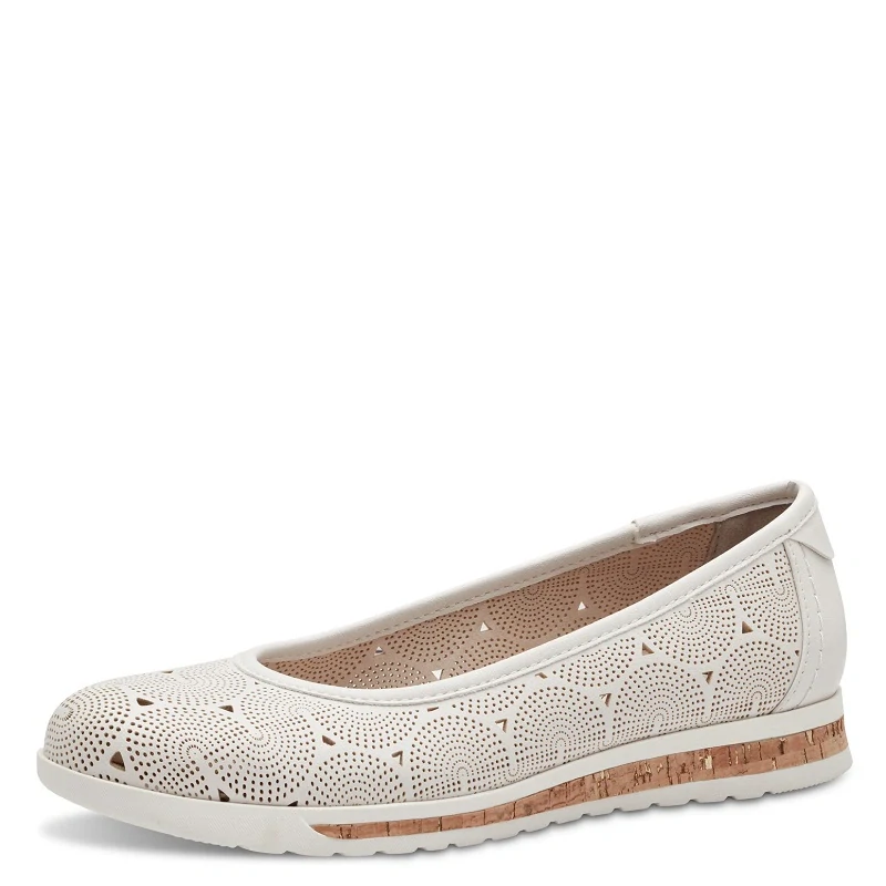 Dámské boty značky Jana Německo, pohodlné baleríny na nížším klínu 2,5 cm, stélka z paměťové pěny, velikost odpovídá, šíře H, ekologický výrobek - VEGAN, barva bílá celý popis