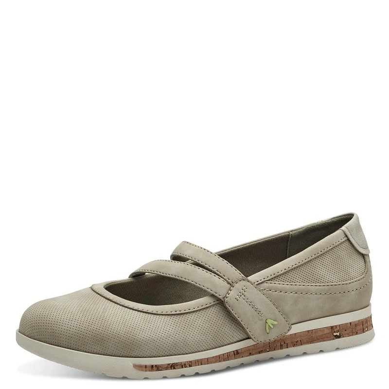 pohodlné baleríny na nížším klínu 2,5 cm, stélka z paměťové pěny, velikost odpovídá, šíře H, ekologický výrobek - VEGAN, barva béžová
