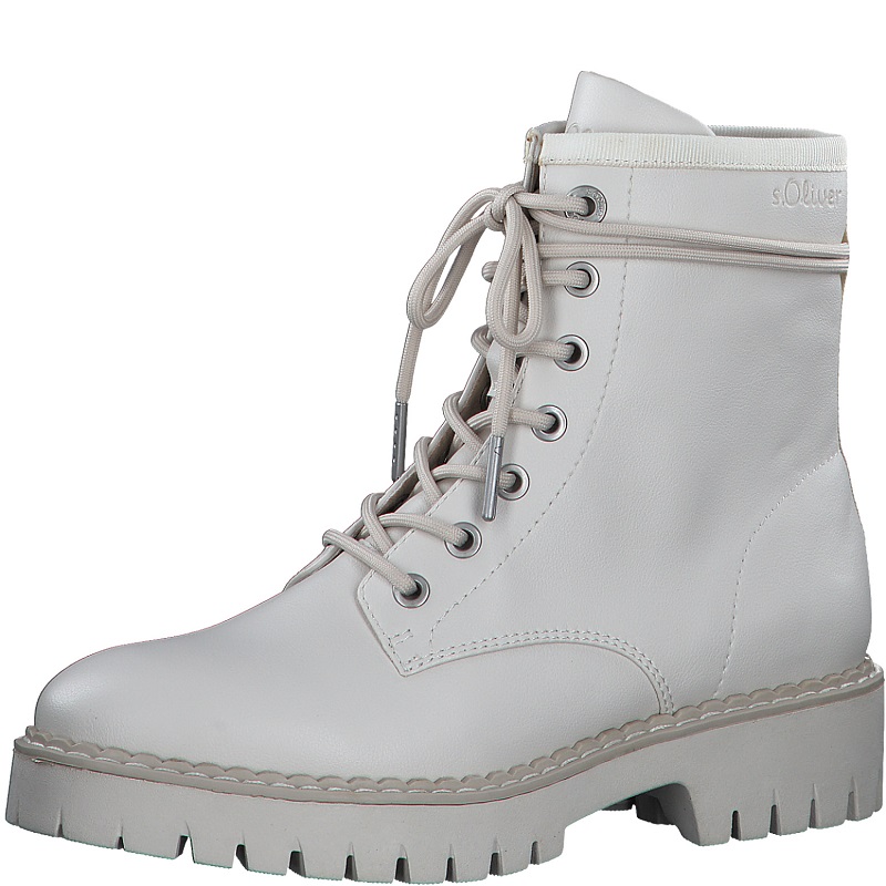 Dámská zimní obuv značky s.Oliver Německo, módní kotníkové farmářky na nízkém podpatku 4 cm s platformou, zateplené fleecem, stélka z paměťové pěny - SOFT FOAM, obouvání pomocí zipu, velikost odpovídá, šíře střední, barva smetanová celý popis