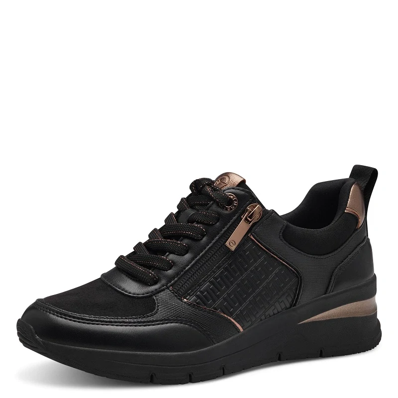 módní polobotky sportovního stylu na klínu 5 cm, technologie VEGAN, vyměkčená stélka z paměťové pěny - TOUCHit, velikost odpovídá, barva černá