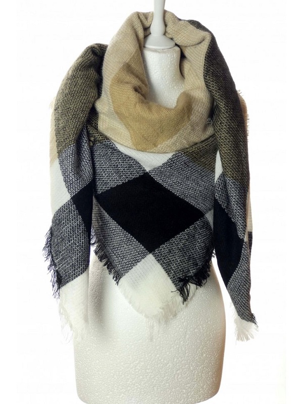 módní hřejivý kostkovaný šátek, velikost 140 x 140 cm, různé barvy