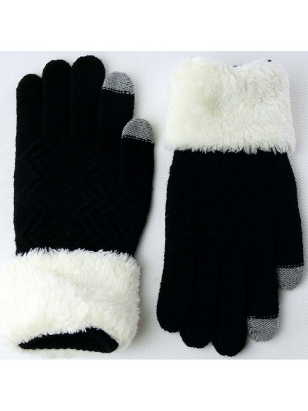 teplé rukavice s kožešinou, polyester, Waterprof, velikost uni, barva černá