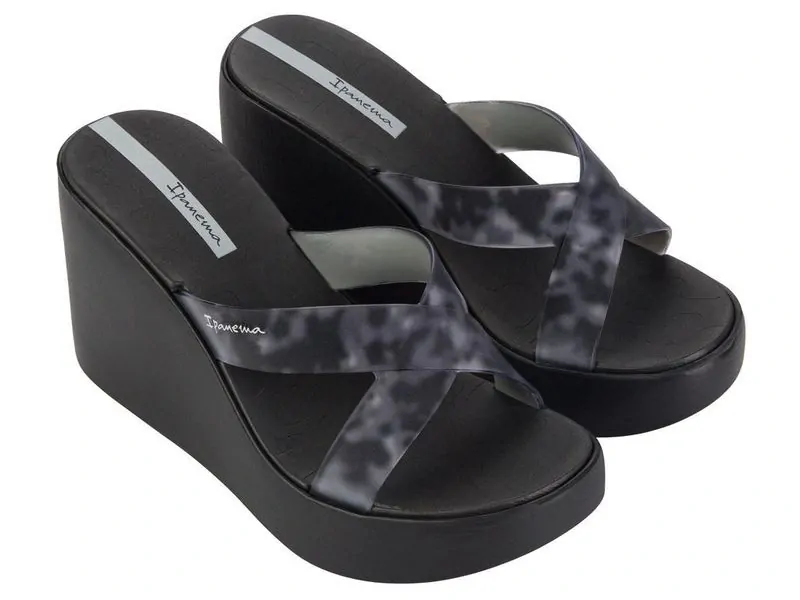 Dámské pantofle značky Ipanema Brazílie, módní brazilské pantofle Ipanema na vysokém klínu, vyrobeny z nezničitelného gumového materiálu FLEXPAND, 100% znovu-recyklovatelný, obuv je velmi měkká a pohodlná, velikost odpovídá, barva černá celý popis