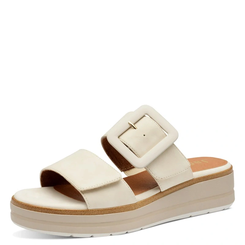 Dámské boty značky Jana Německo, pohodlné pantofle na klínu 4,5 cm, stélka z paměťové pěny, velikost odpovídá, šíře H - lze regulovat suchými zipy, ekologický výrobek - VEGAN, barva béžová celý popis