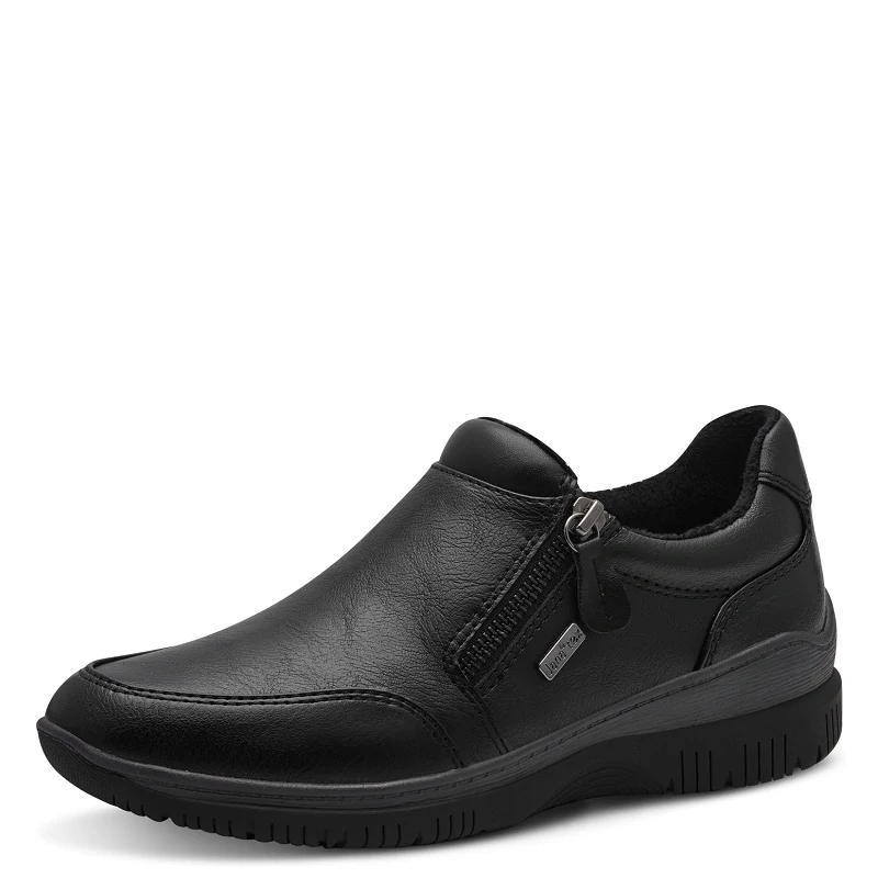 pohodlné polobotky na podrážce 5 cm s platformou, stélka z paměťové pěny, velikost odpovídá, šíře H, odolné proti vodě - TEX MEMBRÁNA, ekologický výrobek - technologie VEGAN, obouvání pomocí zipu, barva černá